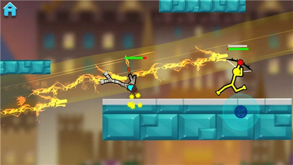 《决斗火柴人》的一大特色玩法是PVP对战。这款游戏支持两名玩家使用同一设备游玩,玩家可借助控制遥控杆来完成攻击与防御操作。