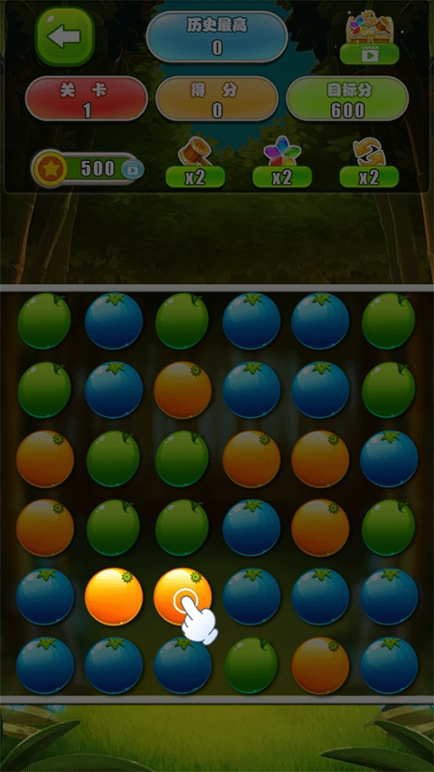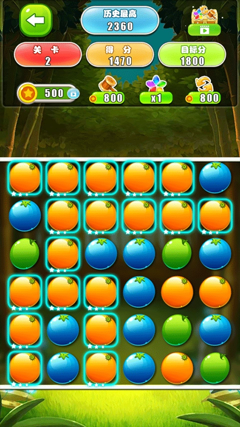 相邻同款水果一键爆破。