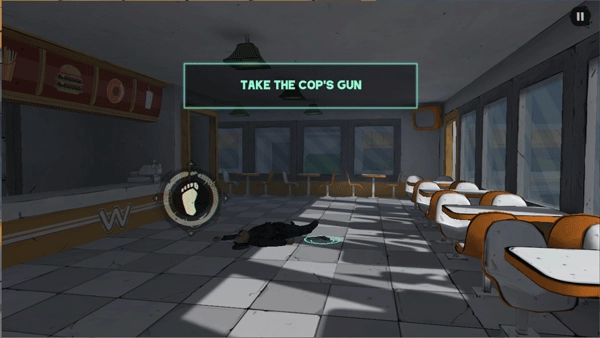 可以看到地上躺着一个人,我们可以拾取他的武器
