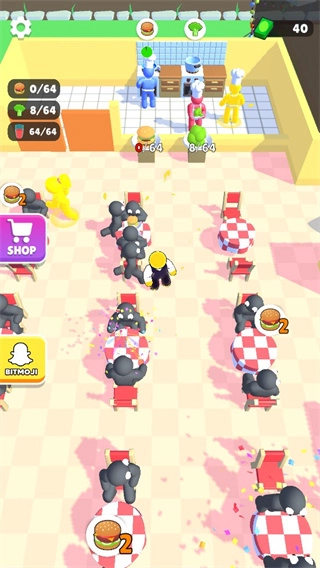 游戏初期,玩家需要亲力亲为处理所有事务;随着经营规模的拓展,你可以招募帮手、添置更多桌椅,从而体验轻松挂机的乐趣。到了后期,还能解锁全新的经营场景,逐步构建属于自己的美食商业版图。