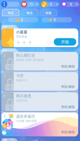 打开钢琴块2,点击开始游戏,选择游戏模式,这里提供经典、世界民间、钢琴家挑战等模式。