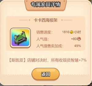 这个家具的作用就是提升店铺的收益,能增加该道具8%的收益,这已经相当可观了。