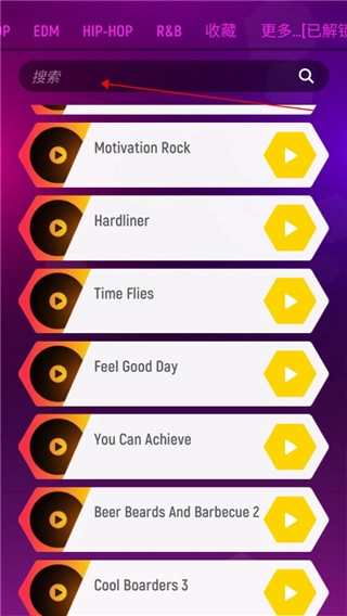 进入节奏弹球游戏后,就能发现游戏里包含着数量众多的歌曲。