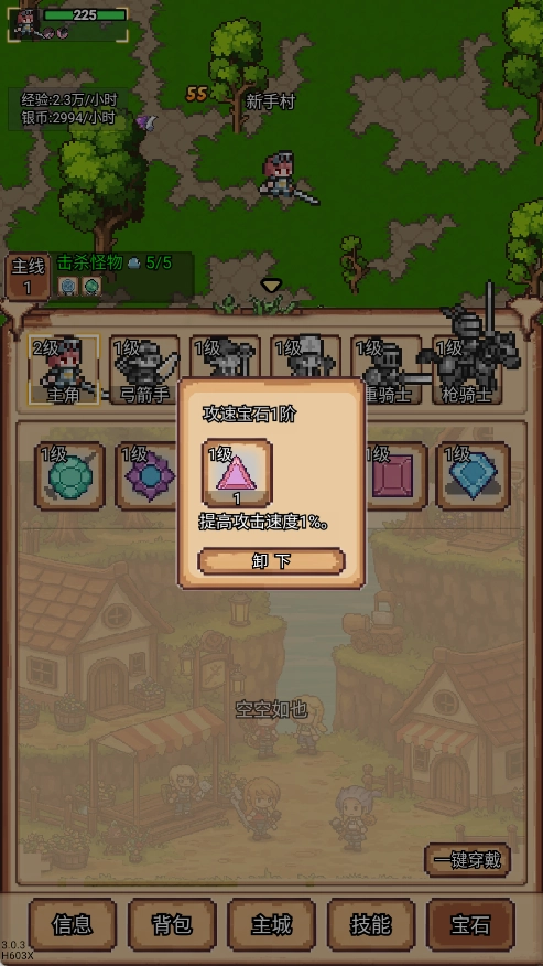 像素冒险村是一款像素风格的冒险养成游戏。玩家需组建专属冒险小队,前期可挑选战士、牧师、法师等基础职业,伴随等级提升与资源积累,还能逐步解锁枪骑士、弓箭手、重骑士等职业,构建起六人编队的丰富组合。不同职业在技能机制与定位上存在差异。游戏不仅设有日常野外挂机地图,还推出了“罪恶之塔”这类层层进阶的爬塔挑战模式,适合热衷挑战极限的玩家;此外,副本冒险也为游戏增添了更多策略性,考验玩家如何运用有限资源达成最优战斗方案。