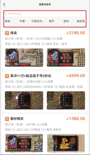 交易中心:划分出游戏帐号、游戏角色、装备道具、游戏代练、帐号租用、虚拟货品等八大核心板块,每个板块都涵盖了丰富多样的游戏品类。
