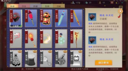 比如我们用了能回满血量的木符,就会立刻得到一个提升攻击力的火符,回满血后就能马上用这个火符,打敌人一个出其不意。哪怕是等级不高的补天石,也具备这样的效果,法器升级只会改变它的冷却时间而已。