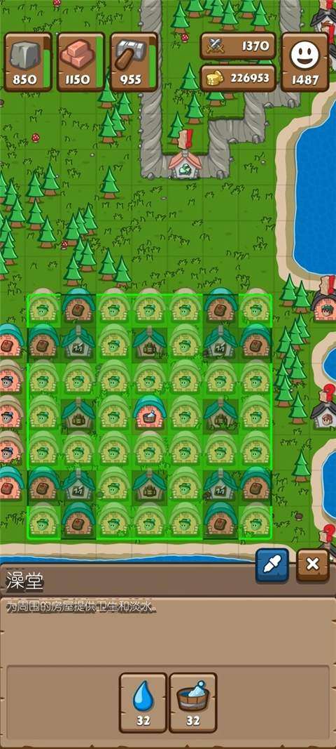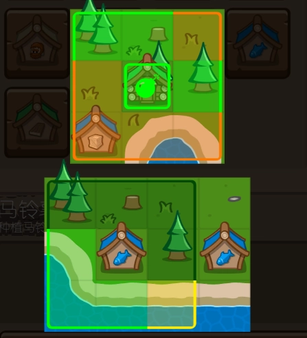 典范由于需要布置的建筑数量过多,没办法再采用之前的方案,必须重新规划布局。将建筑集中安置在中间区域,这样就能覆盖到除四个角落之外的大部分位置,可容纳的房屋数量也相当可观。