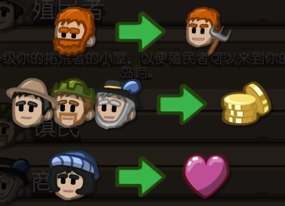 不同类型的村民各自负责产出一种资源。你满足他们的奢侈品需求越多,获取的资源量就越大。需要注意的是,商人缴纳的税款高于城镇居民,城镇居民缴纳的税款又比殖民者多,所以商家是提升收入的最优选择。不过,由于成功还需要民兵力量和相关支持,建议你搭配不同阶级的村民,而非一次性升级所有房屋。