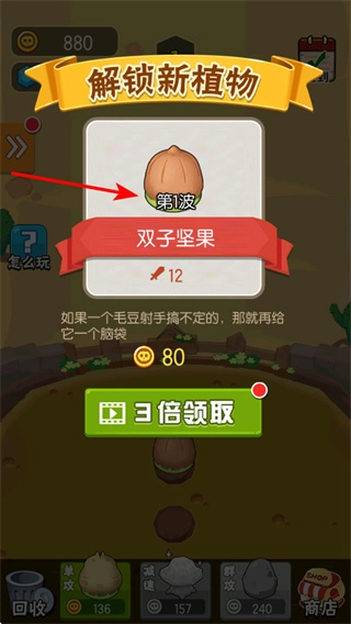 想要领取三倍奖励的话,在成功通过关卡后点击“3倍领取”按钮就行,这样能获取到更多的金币资源,这些金币可以用来给后续的植物和炮塔进行升级。