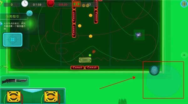 点击左边这个按钮可以发射子弹攻击敌人