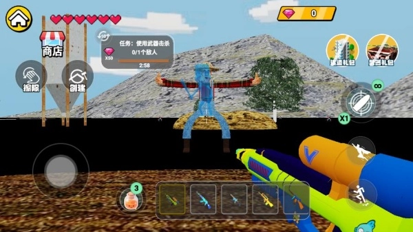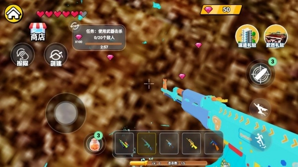 在战斗过程中,玩家得挑选合适的武器,去商店购置适用的枪支,对准敌人,把约翰用你的枪击倒,这样还能得到钻石作为奖励。