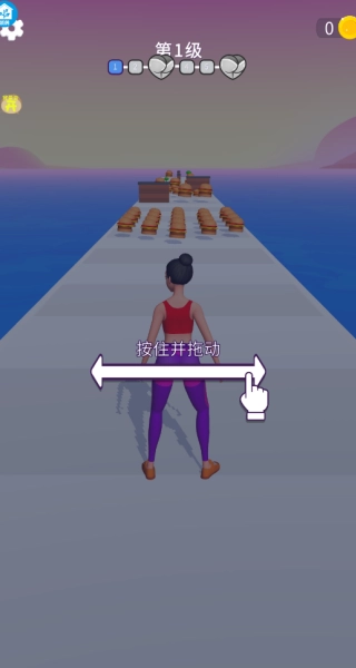 进入关卡后,长按屏幕并拖动来控制小姐姐跳跃前进,松开手指就会停止移动。