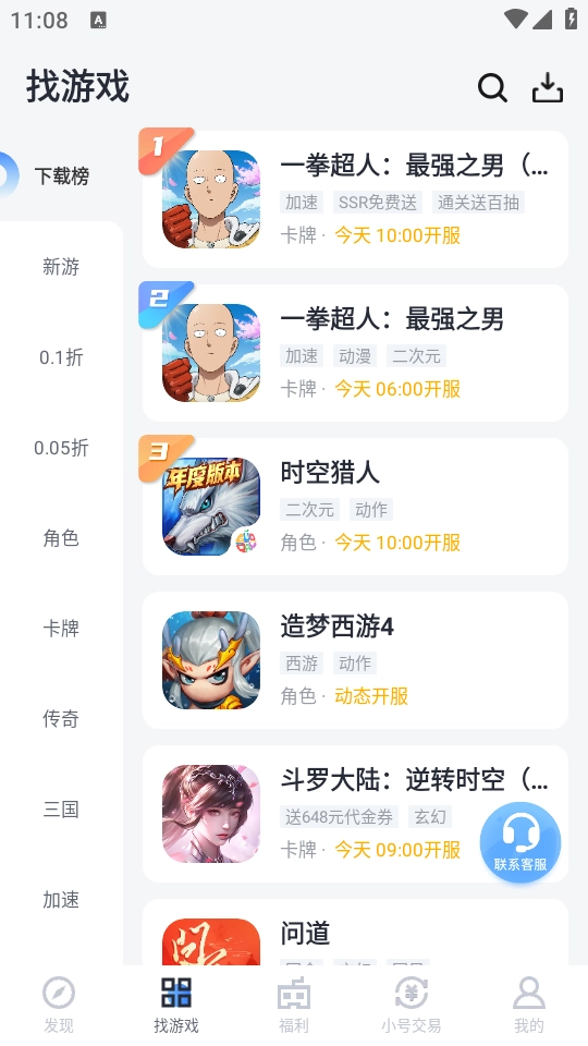 点击【找游戏】,可根据不同分类查找、搜索并游戏。