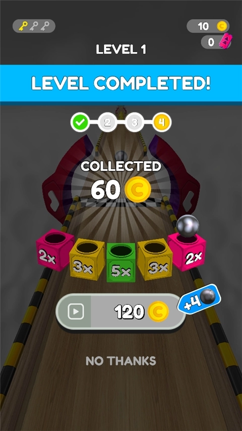 每通过一个关卡的挑战都能得到一些资源奖励,这些资源可以用来解锁保龄球皮肤。
