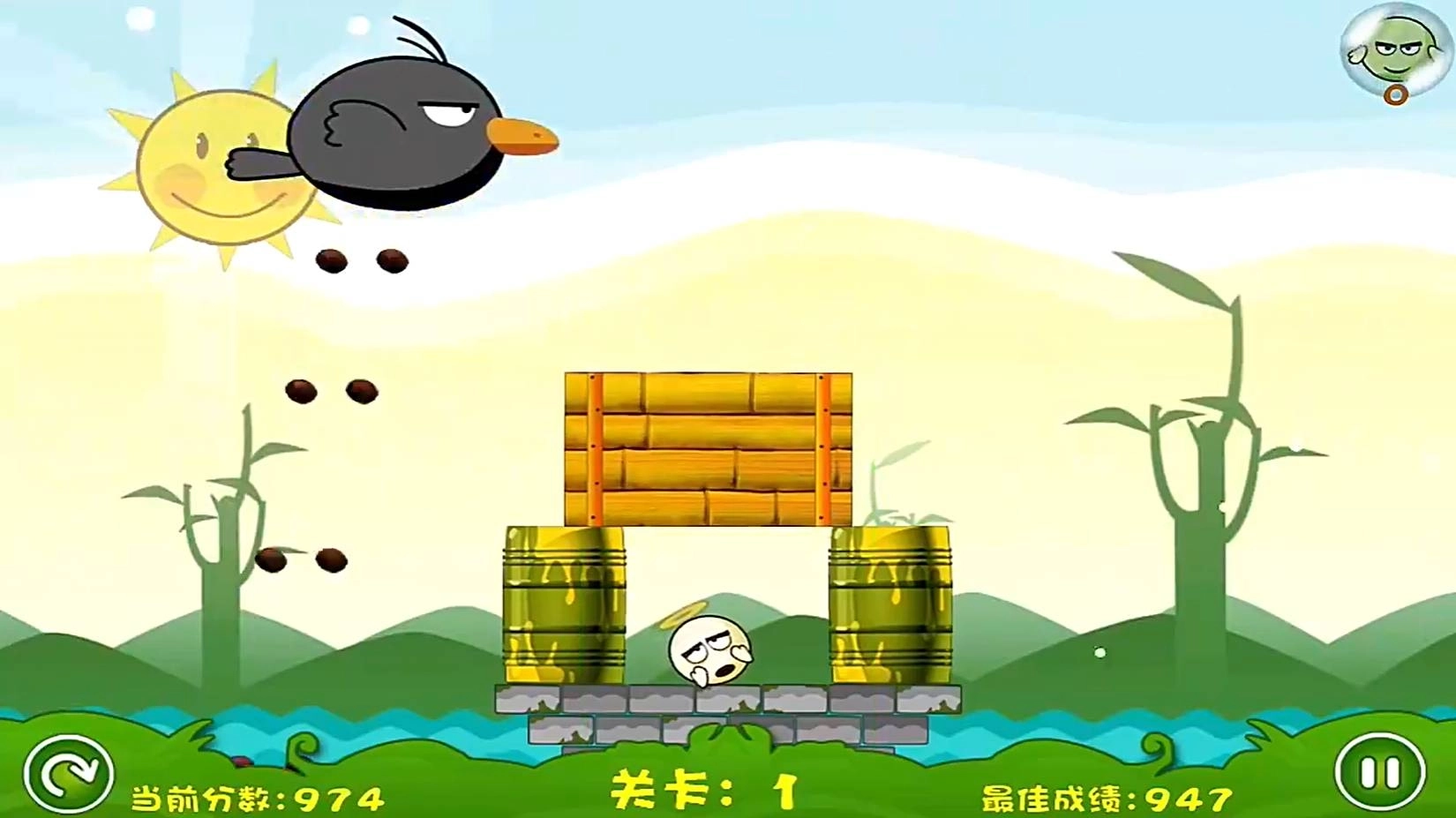 拖拽道具构筑防线,预判乌鸦的飞行轨迹,借助弹射、反弹等技巧抵御毒液侵袭,守护呆萌蛋蛋不被染成绿色!