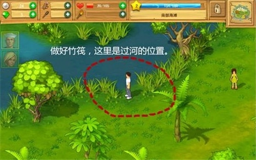 原材料在海岸边就能找到,沿着海岸走一圈就行,过河的地点位于海岛的左上方。