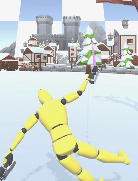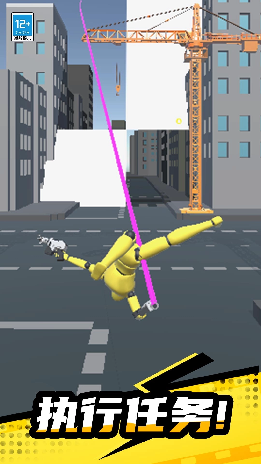 1、核心玩法围绕抓钩设计,轻触屏幕就能发射抓钩,需要精准钩住空中的固定点位,十分考验玩家的瞄准水平。