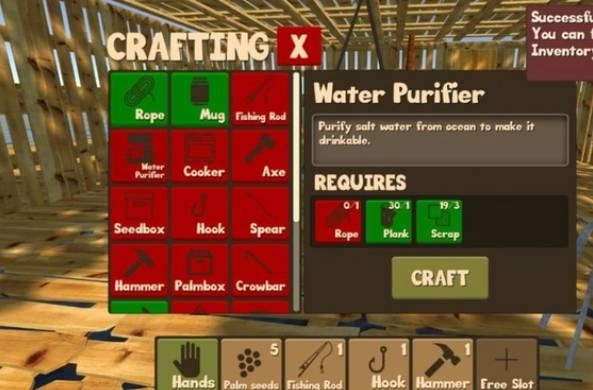 木筏生存多人联机版是一款以木筏为载体的生存冒险游戏,支持局域网联机功能。玩家可以和不同的朋友一同在广阔的海上开启生存挑战,过程中要时刻警惕潜伏在海底附近的鲨鱼。同时,还需要收集材料建造各类生存装备与武器,尤其要记得制作并使用可靠的钩子来捕获海面上漂浮的资源,以此保障自己能在严酷的环境中顽强生存下去。