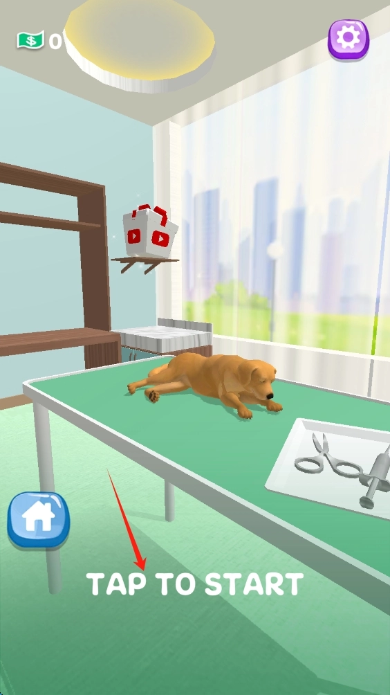 点击TAP-TO-START,开启宠物护理之旅,进入宠物诊疗室,点击开始游戏。