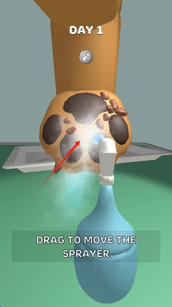 根据提示,拖动喷雾器,为宠物进行清洁护理,完成指定操作,滑动清理碎屑。
