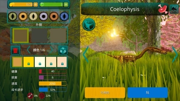 3、借助个性化外观定制功能,你能够塑造出独一无二的恐龙形象。在左侧菜单里,你可以对颜色、纹理等细节进行调整。