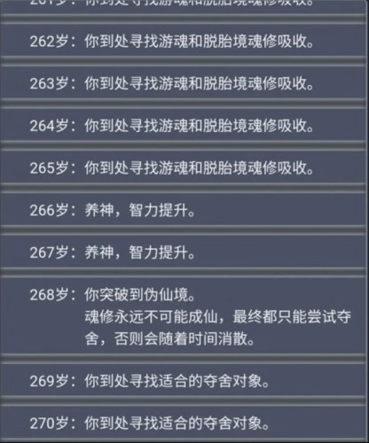 当满足特定条件后,玩家将获得尝试夺舍的机会,从而进入一种全新的生命形态。