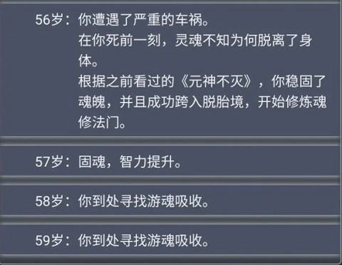 当智力属性高于10点,并且顺利得到乞丐手中的《元神不灭》时,就可以尝试灵魂出窍的奇妙体验了,只是这个过程没办法保证每次都能成功。