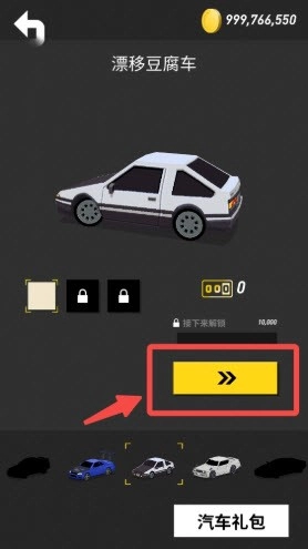 2、接下来可以挑选自己喜欢的赛车,点击下方的赛车就能切换不同的赛车。