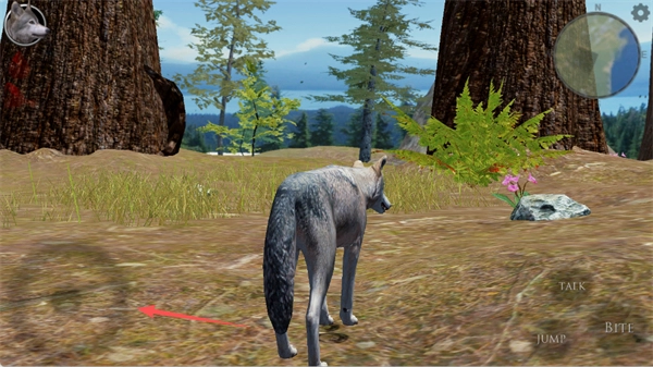 1、进入游戏后,左侧的轮盘可用于操控狼的移动,滑动屏幕便能切换视角。