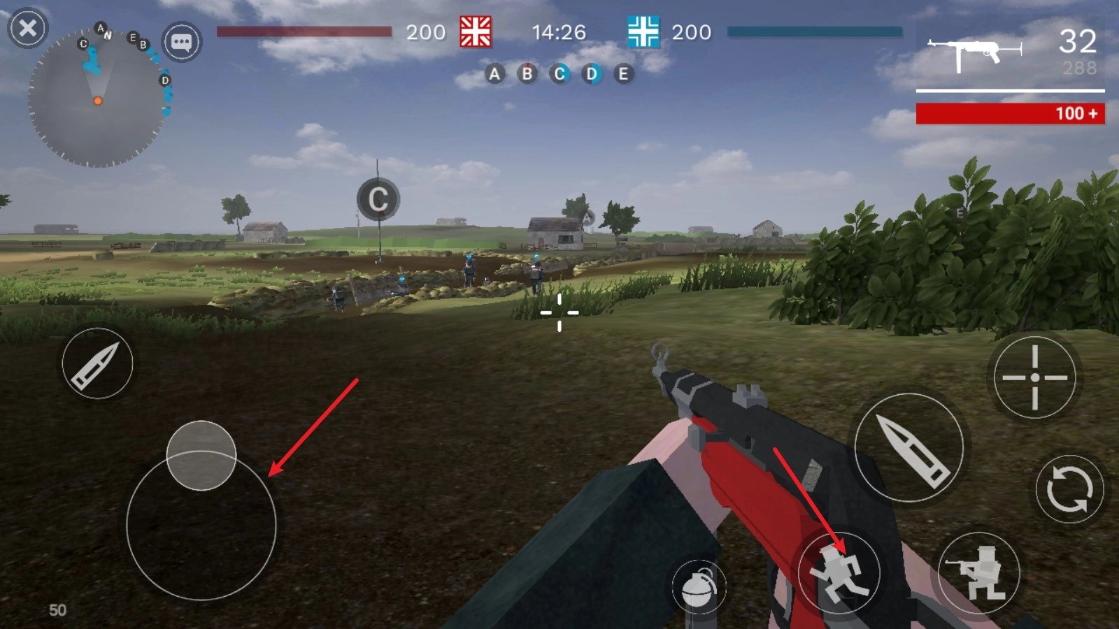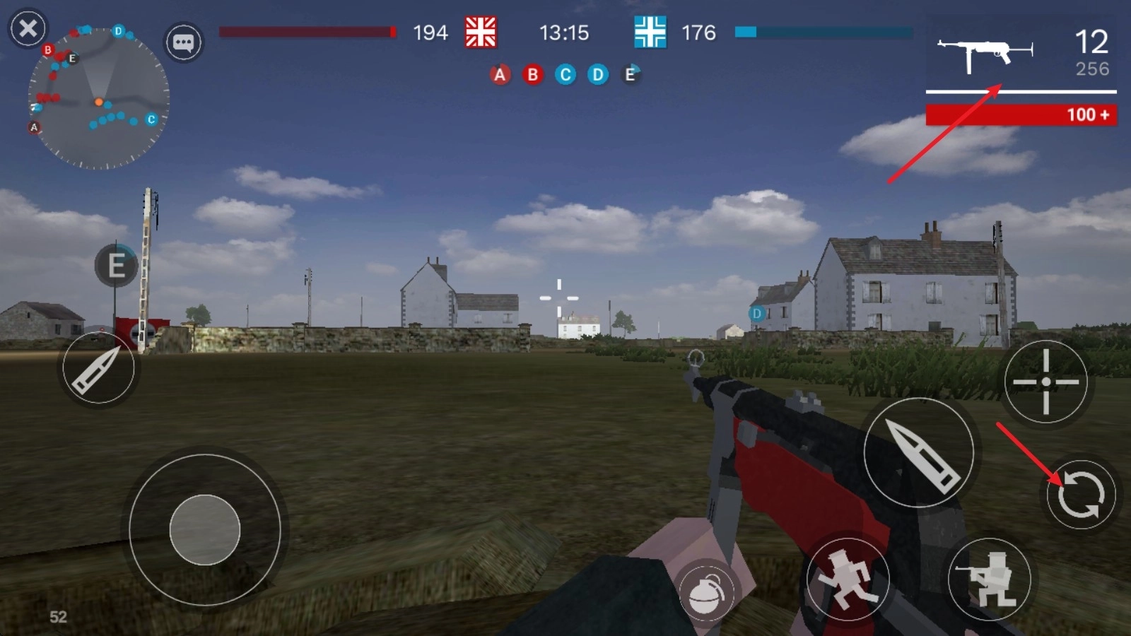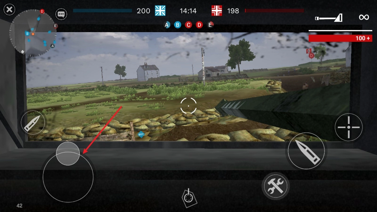 4、遇到敌人时,点击右侧的瞄准键就能架枪瞄准,点击子弹图标即可开枪射击。