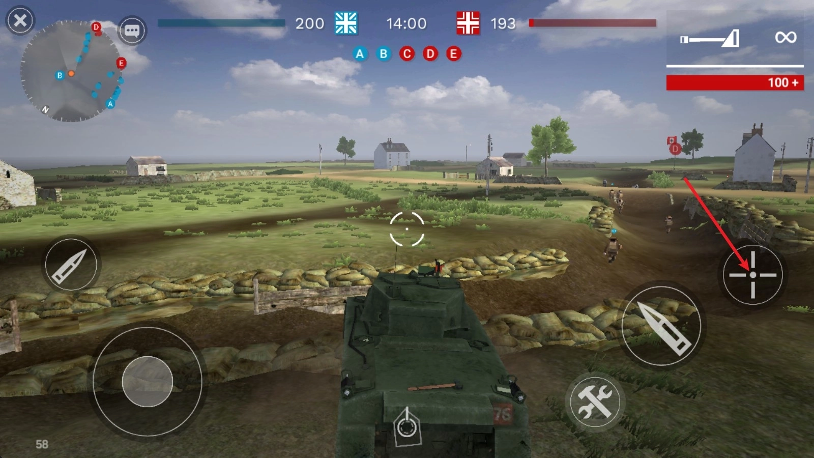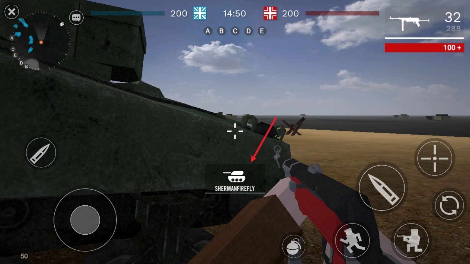 1、靠近坦克后,中间会出现一个按钮,点击该按钮就能进入坦克内部。