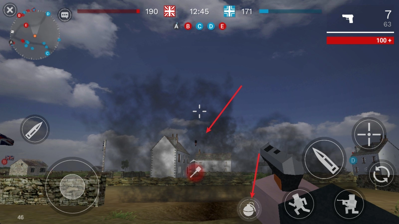 7、当敌人躲在掩体后时,我们可以扔手雷进行攻击。