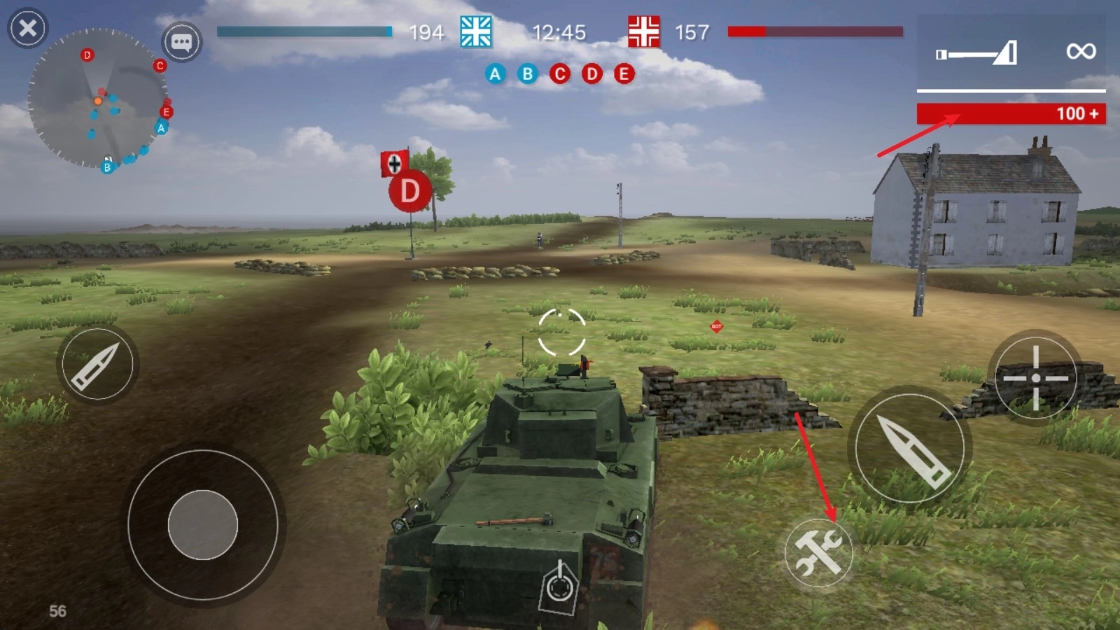 5、在界面的右上角能看到坦克的生命值,一旦生命值偏低,我们就得对坦克展开维修操作了。