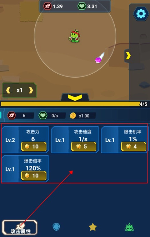 2、玩家可借助下方的攻击操作,提升植物的攻击力、攻击速度、暴击率等属性,从而显著增强植物的战斗能力。