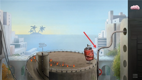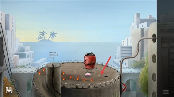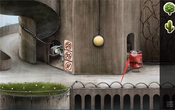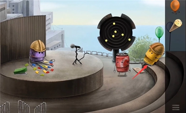 27、回到我们放置棒棒糖的易拉罐所在位置,点击此处将道具放置好就行。