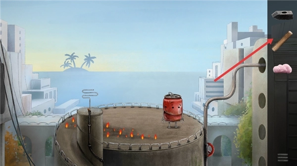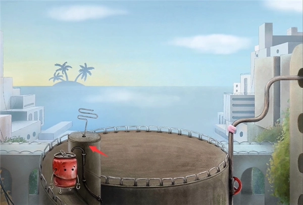 18、点击场景内左侧的铁桶,按照下图所示的方式放置,即可获取对应的道具。