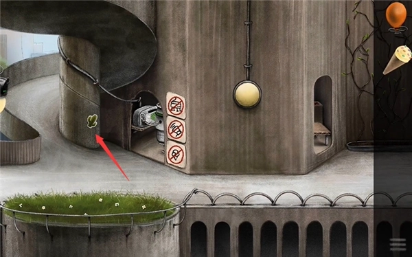17、继续向右移动进入下一个场景,点击图中所示位置的铁链,获取铁链道具。