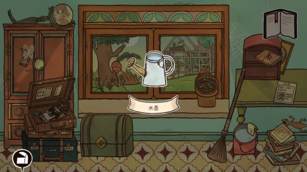 1、【此步骤主要是游戏中的操作提示,可跳过】按照操作指示点开箱子拿出日记本,到1909年将水壶的花朵取出点击水壶,再回到1908点击喷头,组装水壶和喷头得到水壶,给窗台的花盆浇水后到1909,取走窗台的硬币