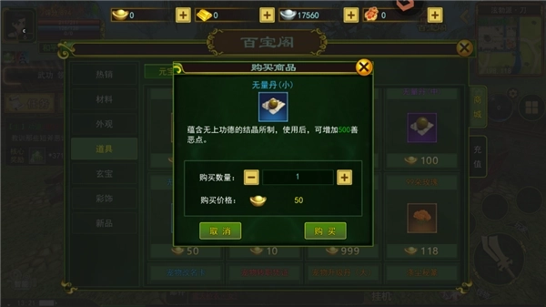 由蕴含无上功德的结晶炼制而成,使用后能增加500点善恶值。