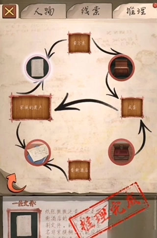 游戏的解谜机制围绕线索组合推动剧情展开,玩家需把各类线索组合填入预设框架,依据逻辑关系构建猜想链并推导出最终结论。这种引导设计让首次尝试该类游戏的玩家也能顺利完成推理步骤,同时带来流畅连贯的游戏体验。