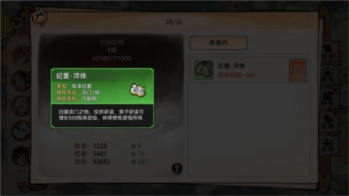 最后,在【悟道堂】悟道还能产出少量【炼体纪要】,研读这些纪要同样可以增加炼体经验。