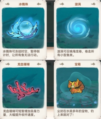 4:钩取水池里的道具(当中型鱼数量不多时,可以借助漩涡刷新一下)