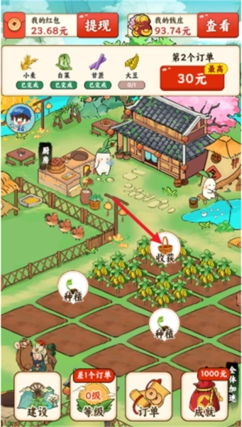 1、沉浸在经典又迷人的田园耕作玩法里,轻触屏幕就能播撒各类作物种子,完成订单收获后就能享受红包回馈带来的喜悦。