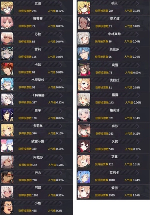 从投票数与人气值的数据来看,爱丽在E线机师里位居榜首。她抱在胸前的玩偶人工智能,能够协助爱丽操控机体。主动技能“彩弹套餐”可发射多种导弹干扰敌人,技能每提升3级就会额外增加1发导弹;被动技能“爱心急救”在开战或支援登场后的8秒内,能让全体友军回复9(18)%的耐久;被动技能“适应力”能使冰火电属性防御力提升15(30)%,异常抗性提高30(60)%;被动技能“卖萌示弱”则会让爱丽的目标攻击下降20%,该效果最多持续15(30)秒。