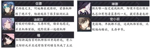PVE机师推荐:琳德(近战单T的不二之选),伍德(佣兵中的最强存在),米朵莉(自带减防效果且精通弹道学),翠丝特(兼具控制能力与输出能力),雷泽顿(能与伍德争夺输出榜首的机师)