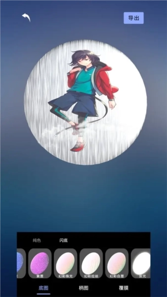 素材:有各种纯色底但是不能自己调,希望有个色盘能自己调。闪底的种类挺多的,但是我没找到拉丝金葱希望加一下。可以自己导入照片。还有两个动态特效封层