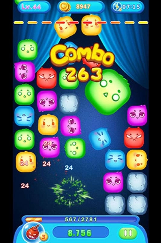 别具一格的道具机制:游戏里配备了炸弹、变色豆等各类趣味道具,玩家借助使用这些道具,能够助力自身消除更多豆豆,进而提升分数。