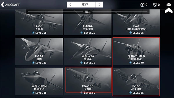 进入到游戏之后选择自己想要驾驶的战斗机。