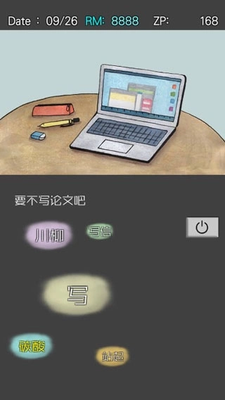 2、在现实场景里,玩家需扮演一名临近毕业的大学生,去体验上网、就餐、兼职、撰写论文等日常活动。