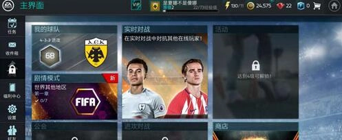 点击游戏主界面左上角的“我的球队”选项,即可进入我的球队界面。